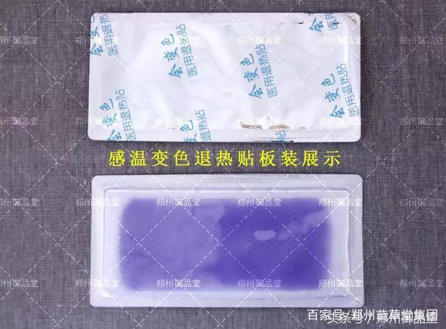 自2018年2月份开始,郑州御品堂医疗器械有限公司专业技术研发团队历时数年研发的新品开始上市,一种可以感温变色的医用退热贴,可以通过感温胶体变色识别身体温度,退热贴胶体颜色有紫色、蓝色、粉红色;